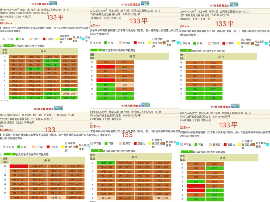 相比之下,133㎡户型的市场表现则亮眼许多,成交均价在7.7万元/㎡上下,去年最后一个月跌到了7.47万元/㎡。例如16#、18#(除1单元-901)已售罄。