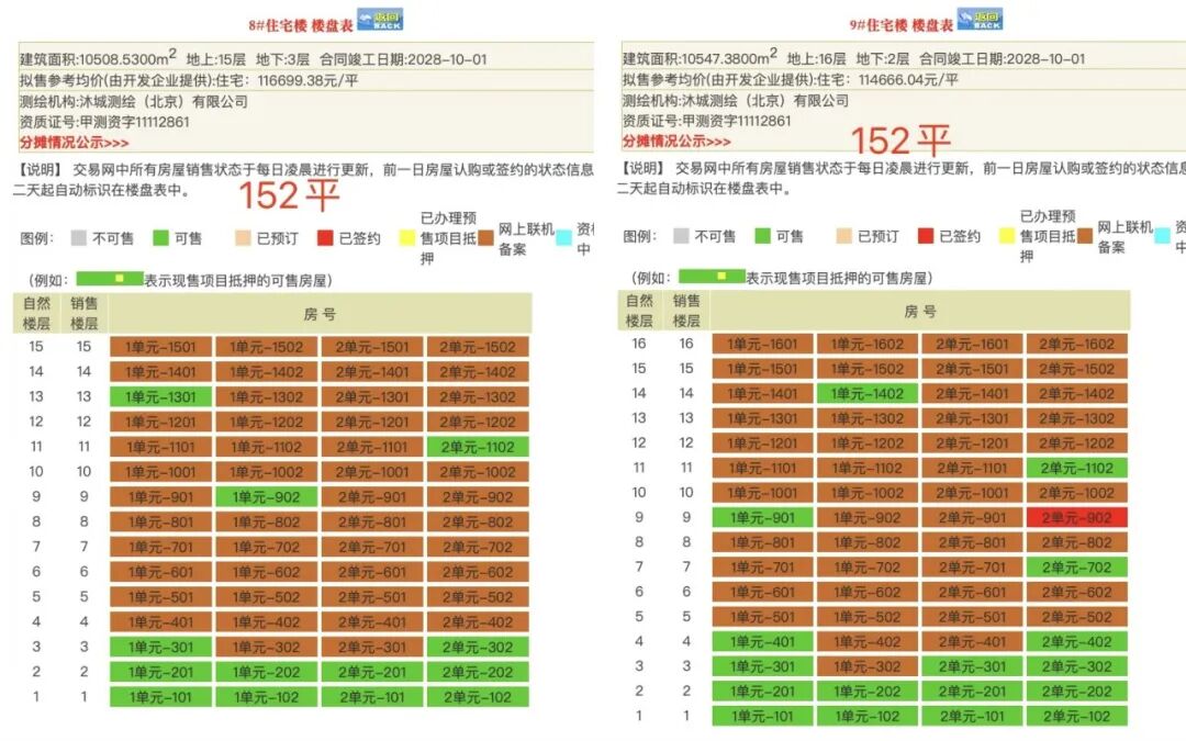 首开的8#和9#,均是152㎡户型,卖得相当火爆,各自网签了47套,几乎就剩下低层房源未售。