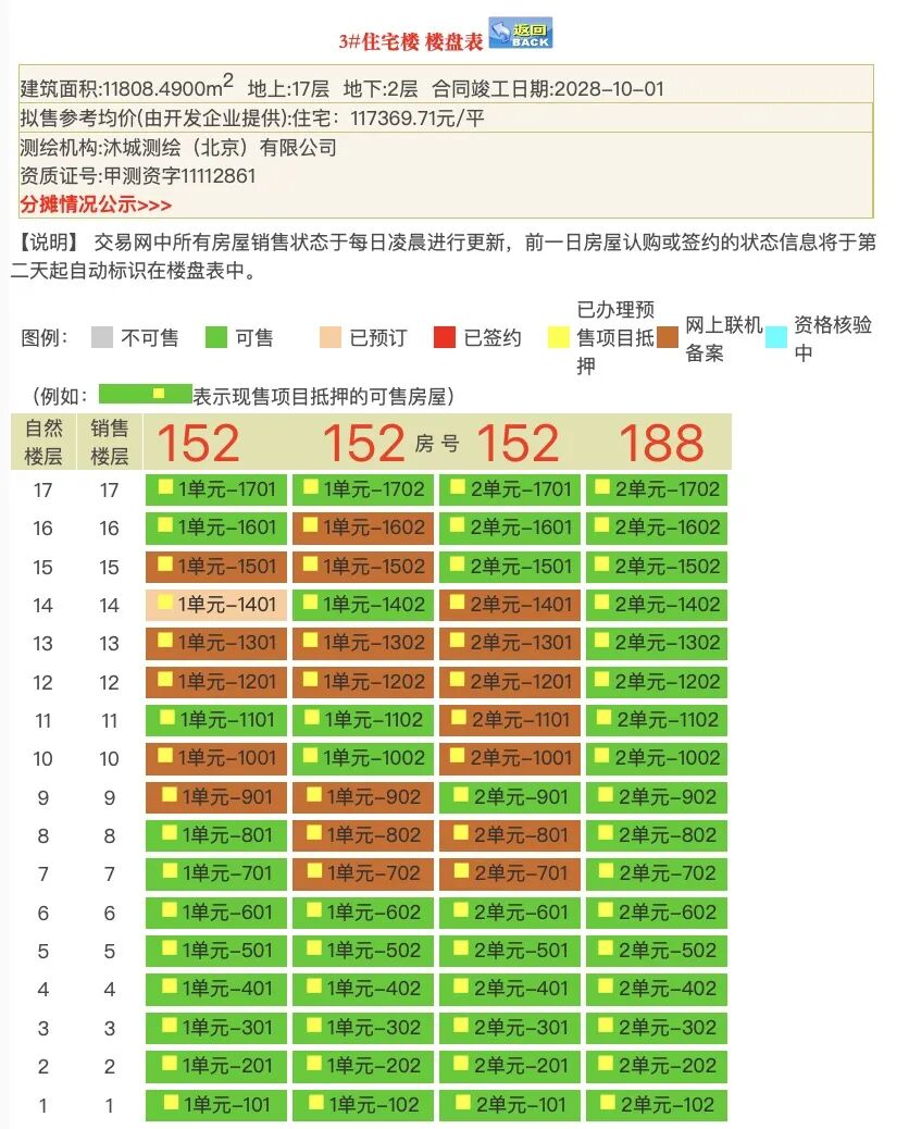 但后续加推的3#,东边3个单元也是152㎡户型,因为更接近幼儿园,销售势头明显放缓,在售51套,目前网签19,去化率37%。