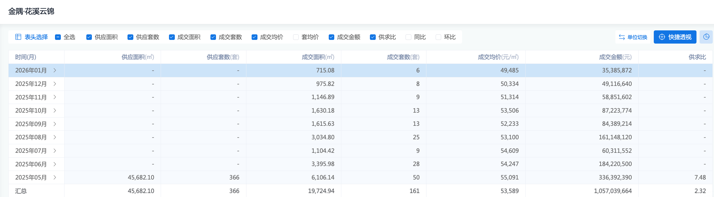 目前网签160套,成交均价5.36万元/㎡,金额总计10.5亿元。