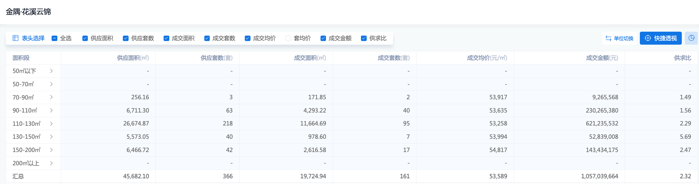 110-130㎡主力面积段,供应218套,网签95套,去化不到44%。