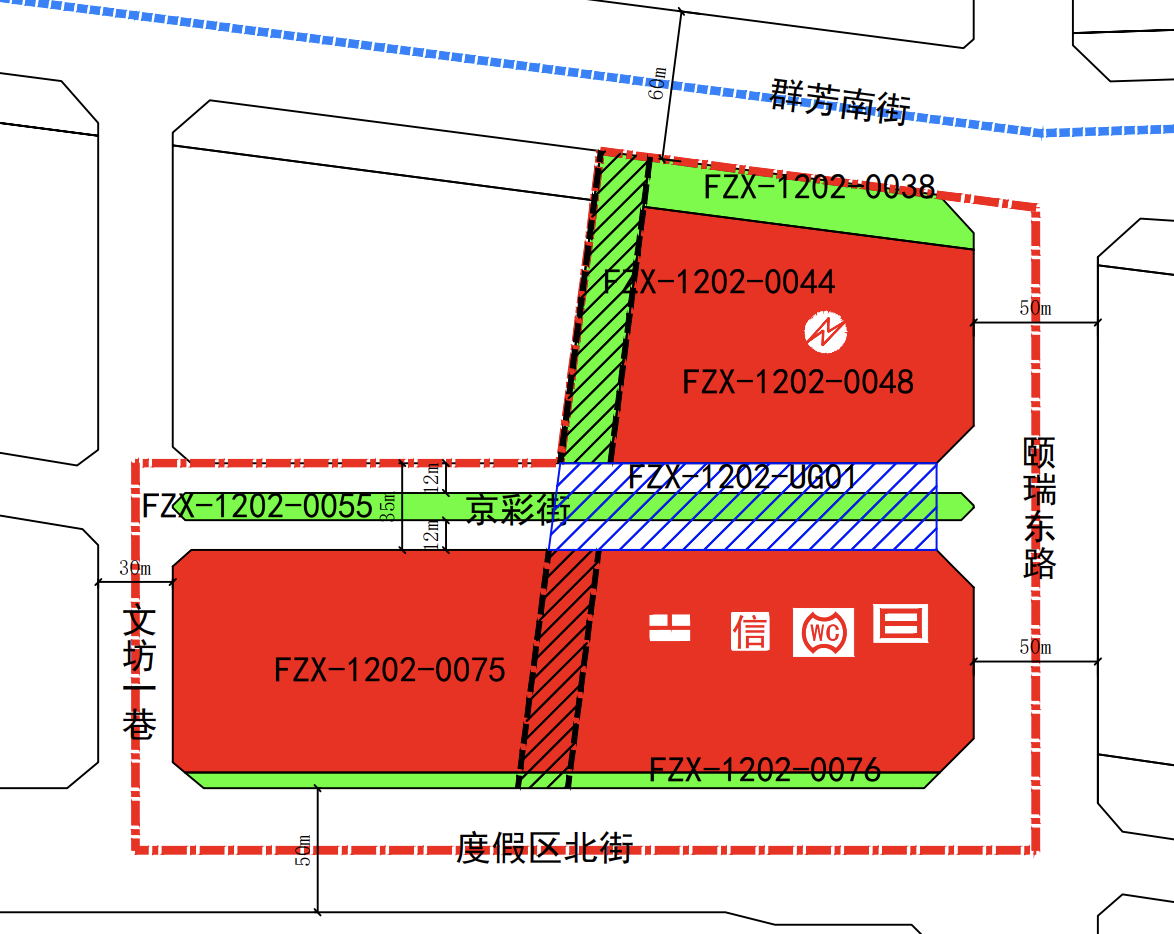 上述两幅地块鼓励地上、地下连通,跨京采街按需设置连通设施。