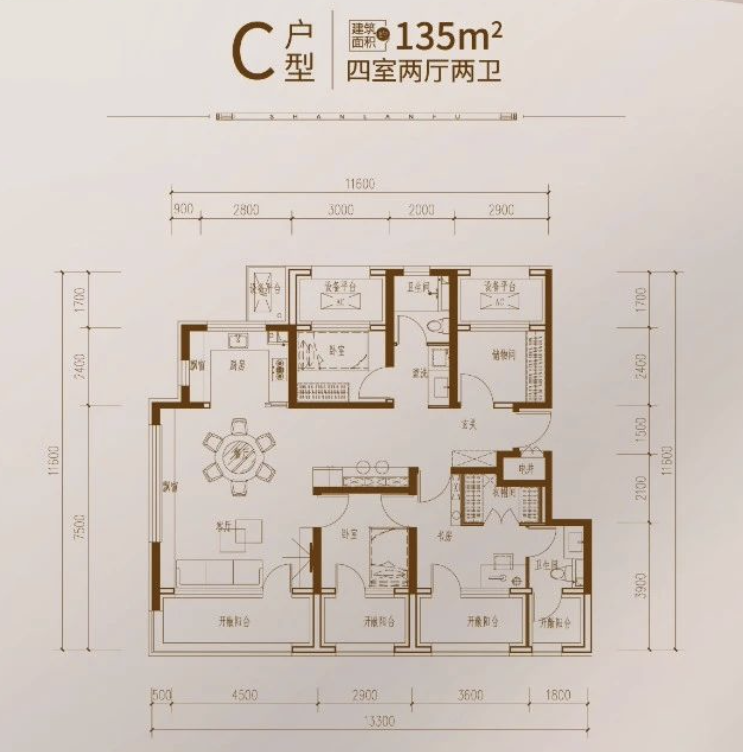 主推115—135㎡三居四居,销售指导价3万元/㎡。