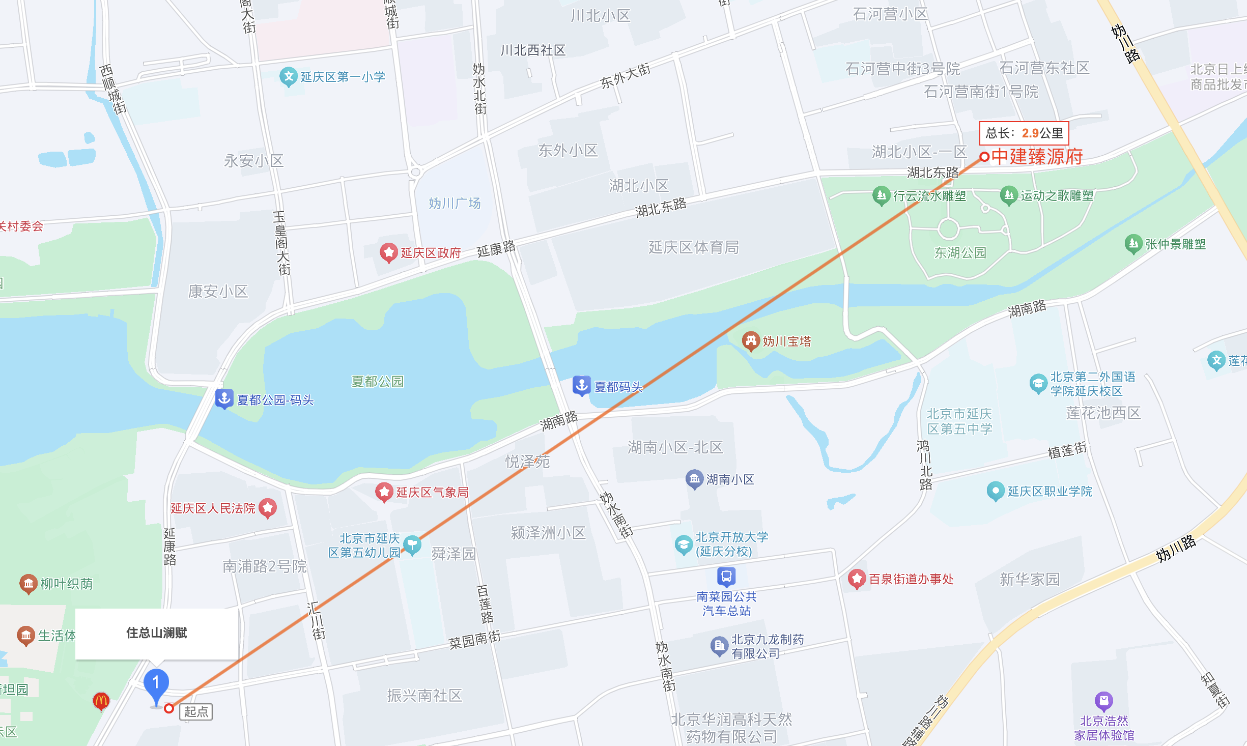最大的竞品是中建臻源府,两个项目分别位于妫水河的南北两岸,直线距离3公里左右,体量、容积率相当。