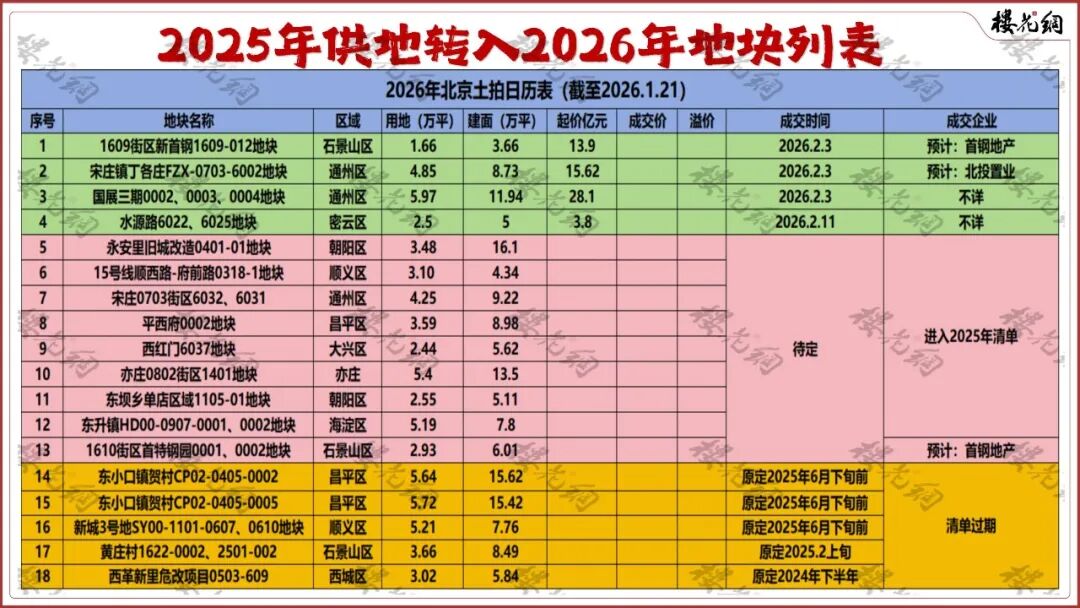 截至目前,北京2026年已确定的土拍有四宗,都在2月份。