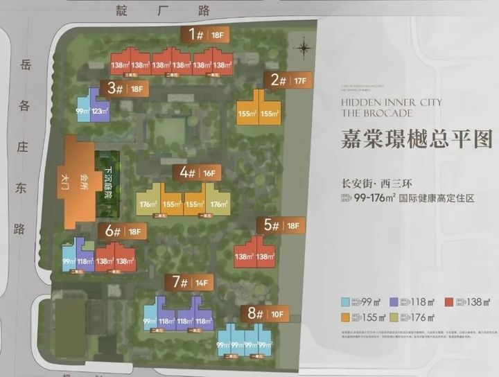 规划8栋10-18F住宅楼,共440套,面积段99/118/123/138/155/179㎡。其中138㎡是主力户型,占比近四成。