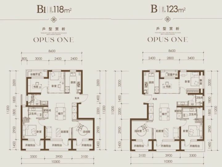 比较大的差异是,118㎡北向只有一间次卧赠送设备平台,123㎡则多了东面的飘窗。