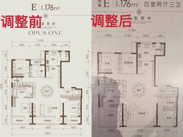 顶配176平户型,终于有独立玄关。原来只有一个主卧套房,更改后,南向次卧也变成套房,增加了卫生间。
