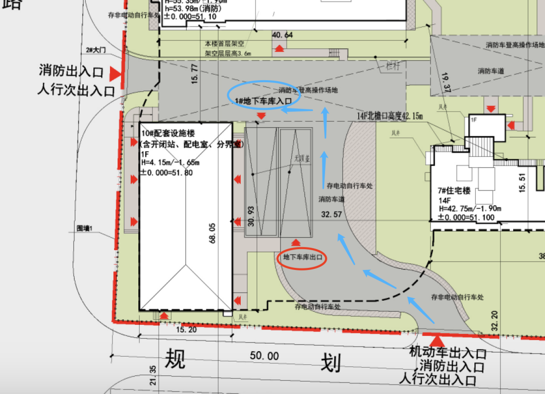 开发商称,集中布置在用地西南角,是为了尽量减少车库出入口对相邻住宅的影响。