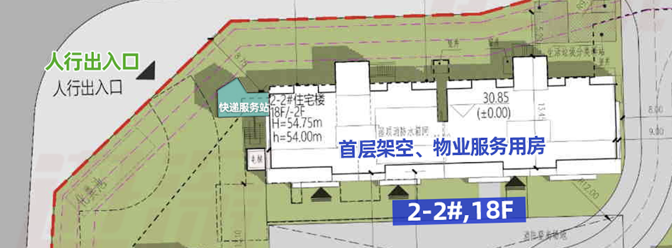 东北角2号楼为18F小高层,两个单元,每层4户,首层局部架空。
