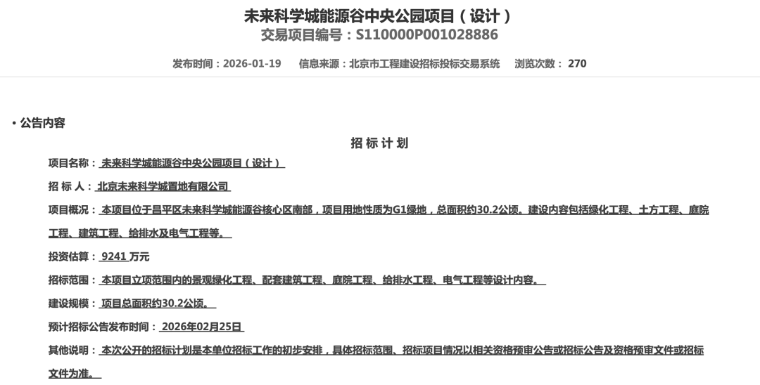 需与项目周边绿地一体化设计,建设方案需经昌平区政府同意,建设标准需符合未来科学城管委会相关要求,并由昌平区政府监管落实。