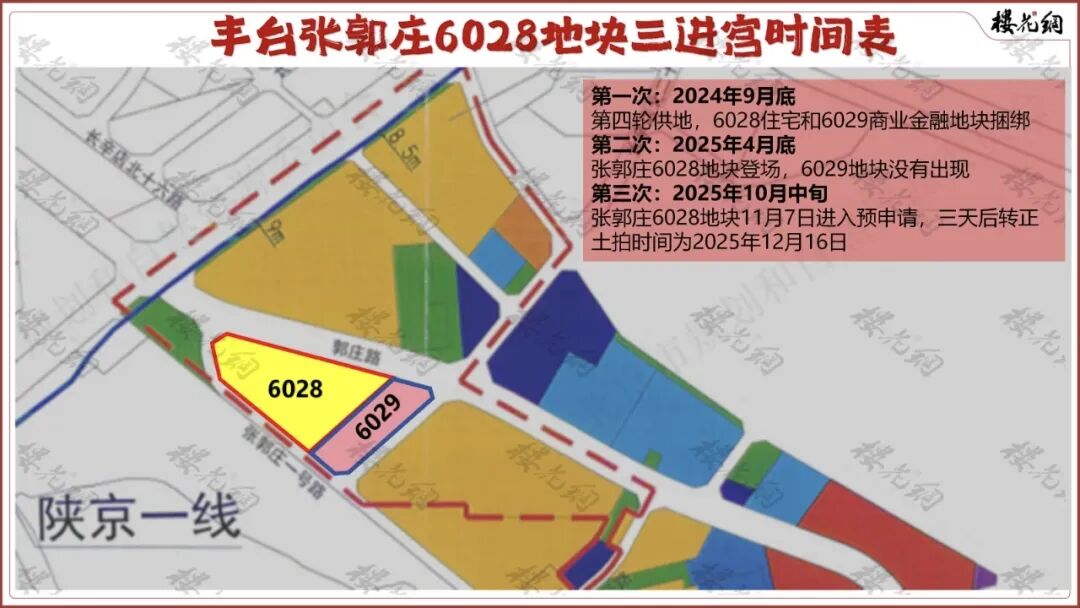 第三次,发生在2025年10月中旬。张郭庄6028地块第三次出现在供地清单里,于11月7日进入预申请,三天后转正,明确土拍时间为2025年12月16日。