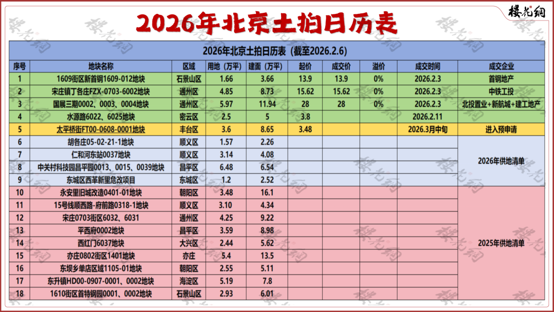 此外,2026年新供的顺义区05-02-21-1地块已进入预申请,预计3月中旬开拍。