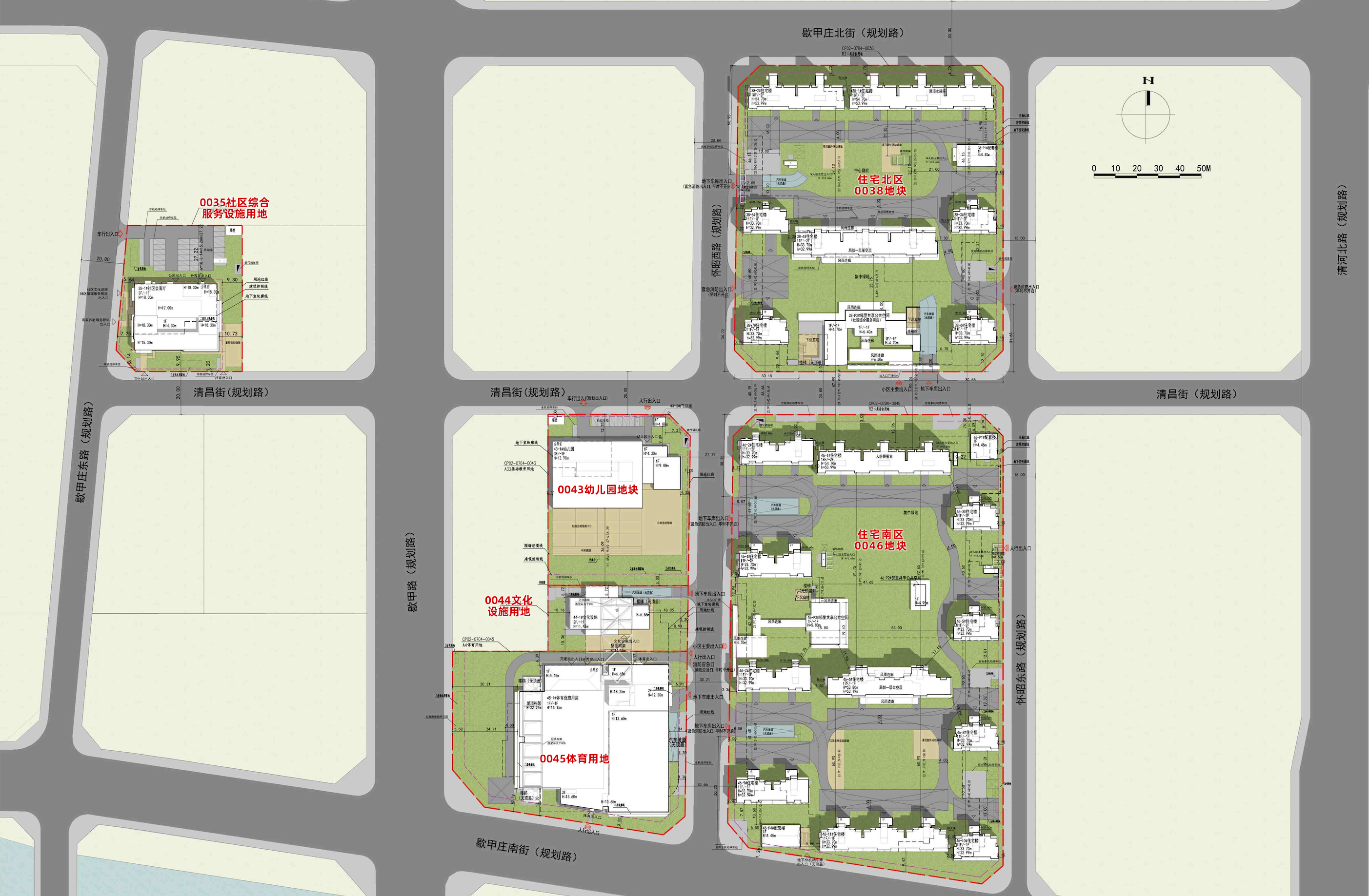 西侧为配建项目,包括0043幼儿园地块、0044文化设施用地、0045体育用地;