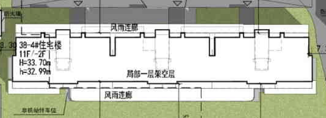 正中央4号楼首层局部架空,南北均有风雨连廊。