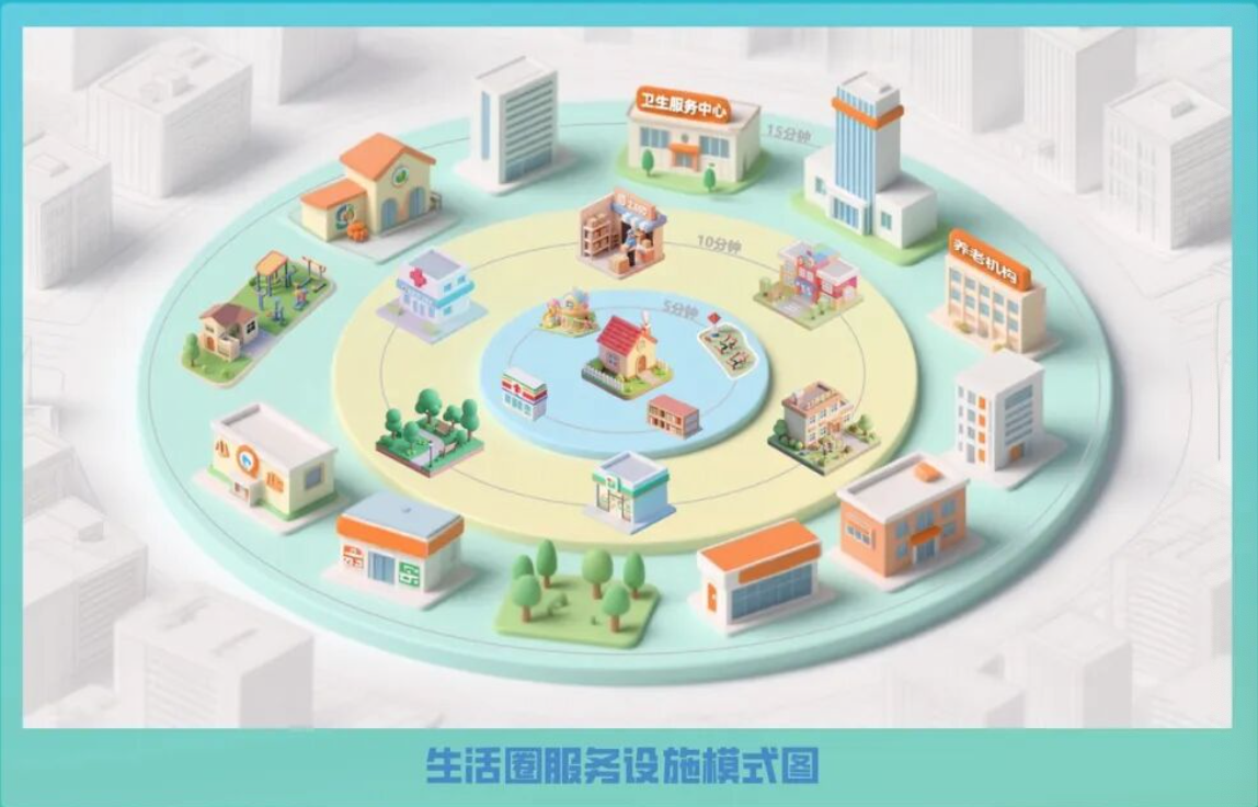 补足医疗、文化、体育等短板,实现15分钟社区配套服务全覆盖。探索养老设施、停车设施与教育设施兼容转化促进土地资源集约高效利用。