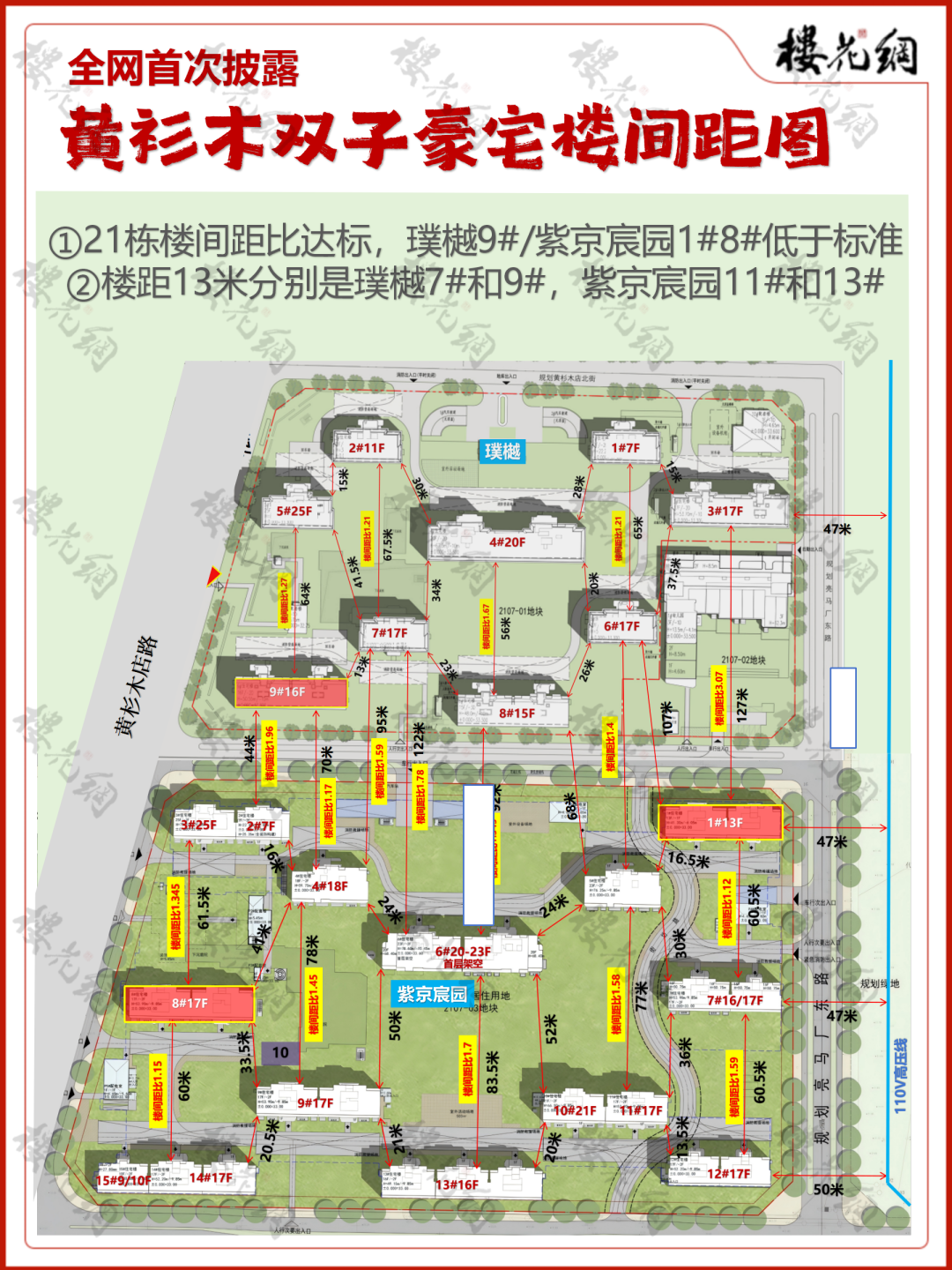 从图纸上看,璞樾和紫京宸园的确没有画出建筑间距、退线距离,而且图纸非常不清晰。据说,是因为出现过大改。