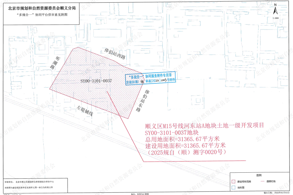 2月11日,北京市顺义区M15号线河东站A地块土地一级开发项目SY00-3101-0037地块二类城镇住宅用地进入用地预申请。