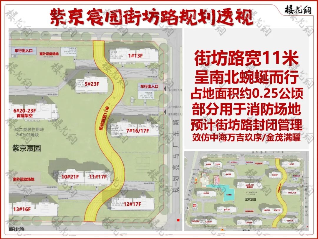 紫京宸园内,有一条南北走向的街坊路,宽11米,是花钱买的,计入容积率。