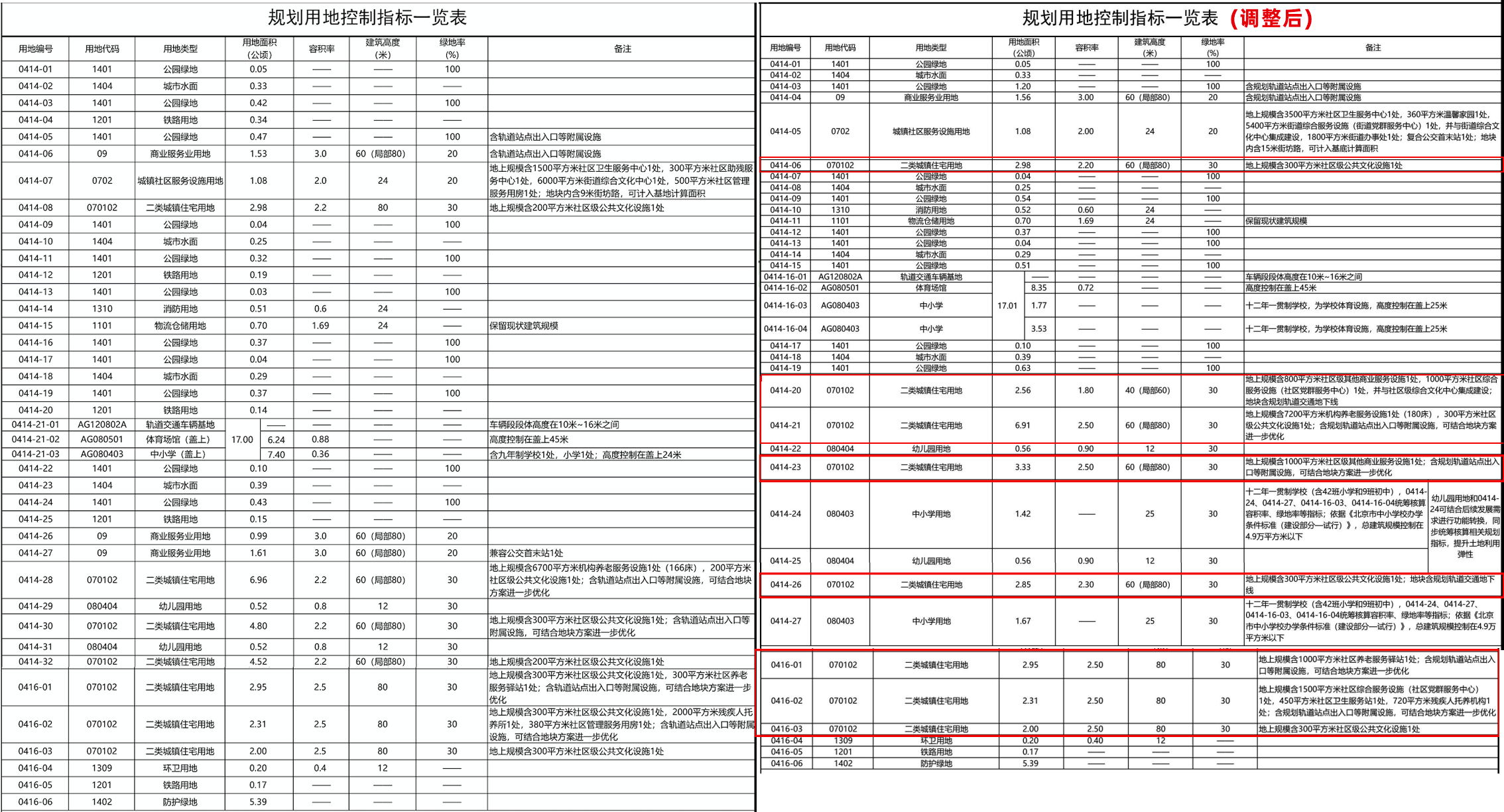 此次最大的调整是将东北角的两幅商业服务业用地(原0414-26、27)合并为1幅住宅用地(现0414-20)。