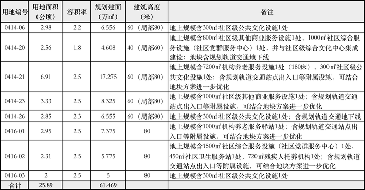 0416-01地块2.95公顷,地上规模含1000㎡机构养老服务驿站1处;含规划轨道交通站点出入口等附属设施,可结合地块方案进一步优化;