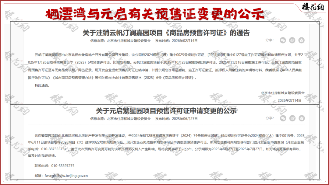 北京市住建委发布一则通告,注销了云帆汀澜嘉园项目的《商品房预售许可证》(京房售证字(2025)6号)。