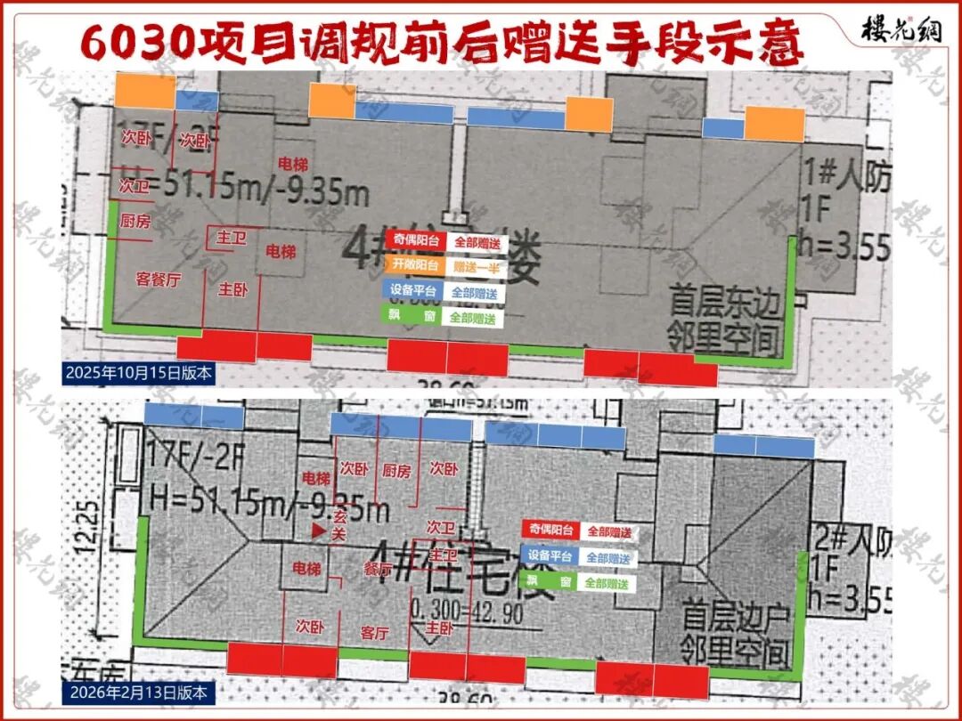 花姐推测,6030项目此次调规最大的变化是——所有户型北向的赠送手段,变为通面可封闭交付的设备平台。