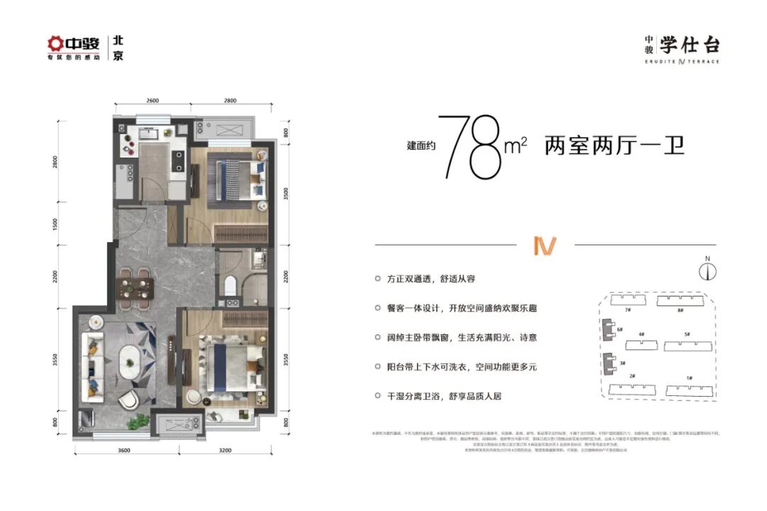再看89m²三居双卫,位于1#、2#、7#、8#。此次首开2#,拟售均价34416.69元/m²,得房率78.3%。