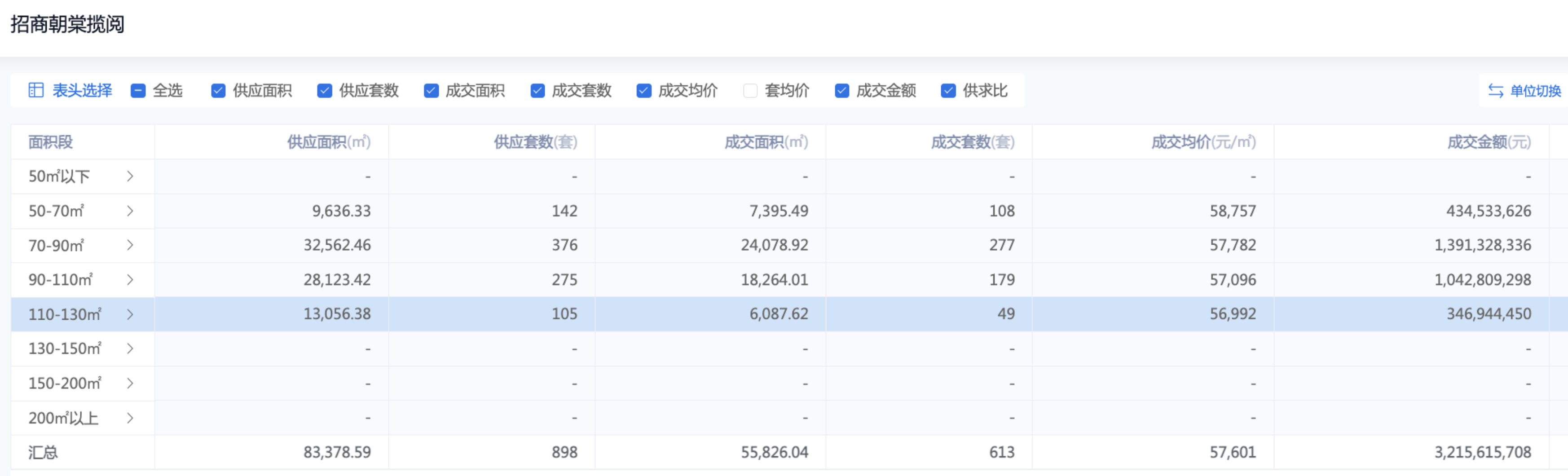 与当前市面上新盘常见的成交表现相反,朝棠揽阅小户型单价、流量双高,大户型反而卖得差一些。