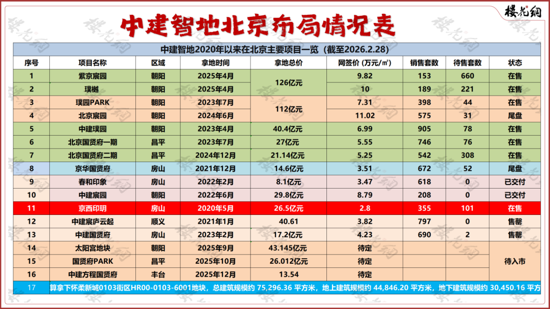 去年5月,北京建工以3.59亿元拿下怀柔区HR00-0103-6012地块,9月拿证224套,一个月后网签133套。