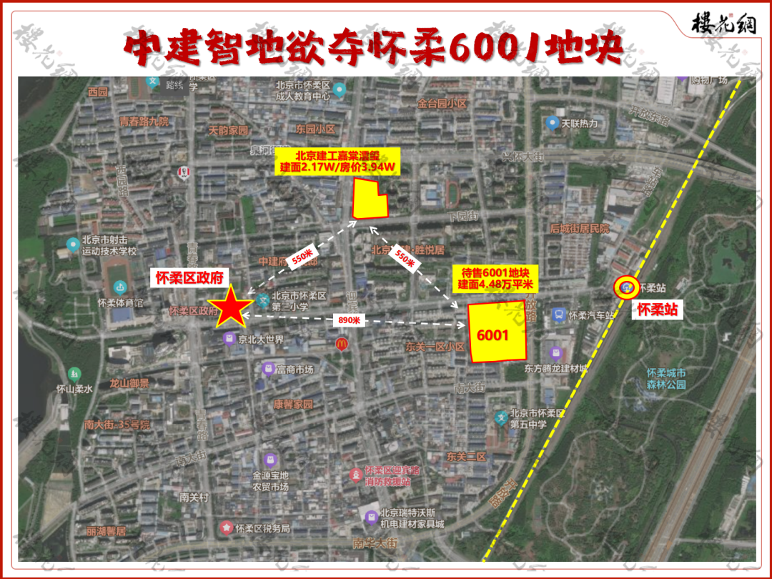 按照招标计划透露出的信息,6001地块的位置不错,北至府前东街,东至开放路,南至、西至天齐路,离怀柔区政府只有890米。
