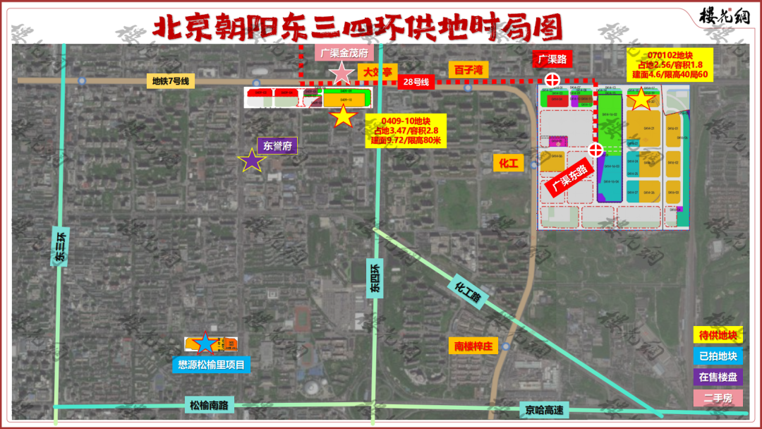 早在2025年5月6日,朝阳区南磨房乡广渠路公示了规划综合实施方案,核心包括1块宅地、2块商业服务用地: