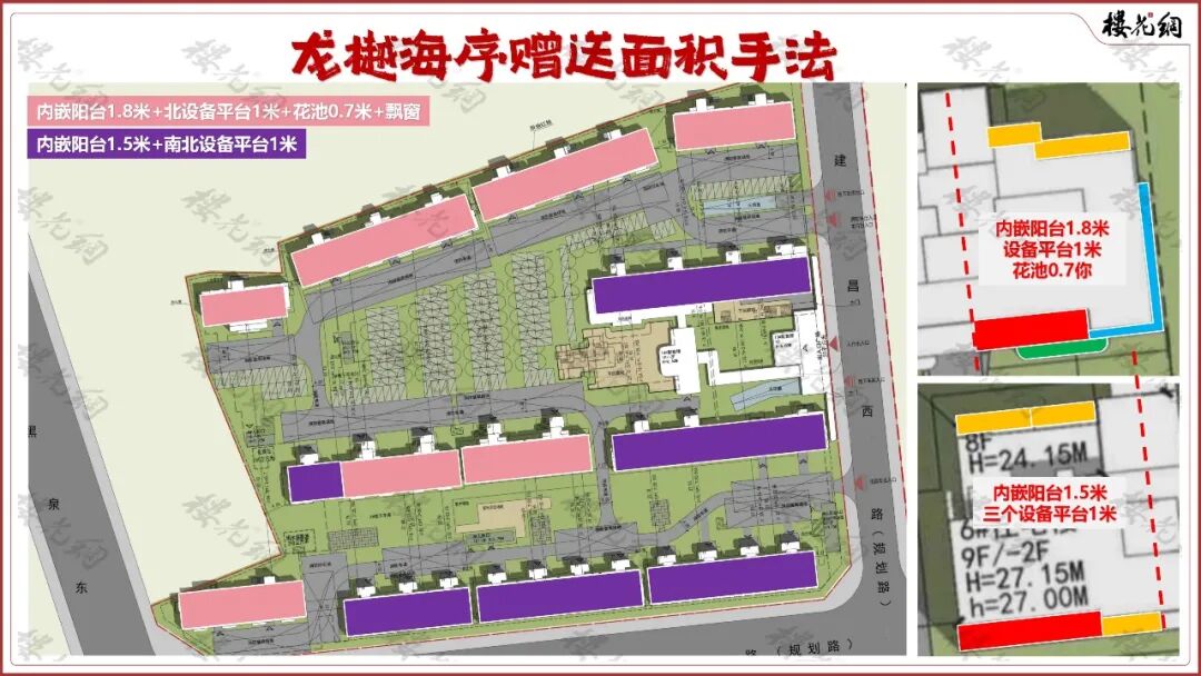 只不过,龙樾海序南向的设备阳台,只出现在没有花池的楼栋里。