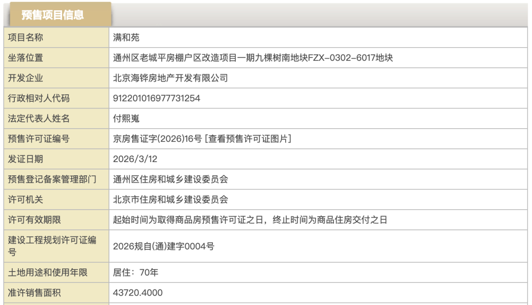 中海通州玖树满和取证,拿下马年首张预售证
