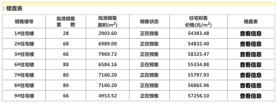 本次取证共计7栋楼,约476套房源,分别是1#、2#、3#、6#、7#、8#、9#楼,批准销售均价5.4万-5.9万/㎡,总价门槛约350万起。