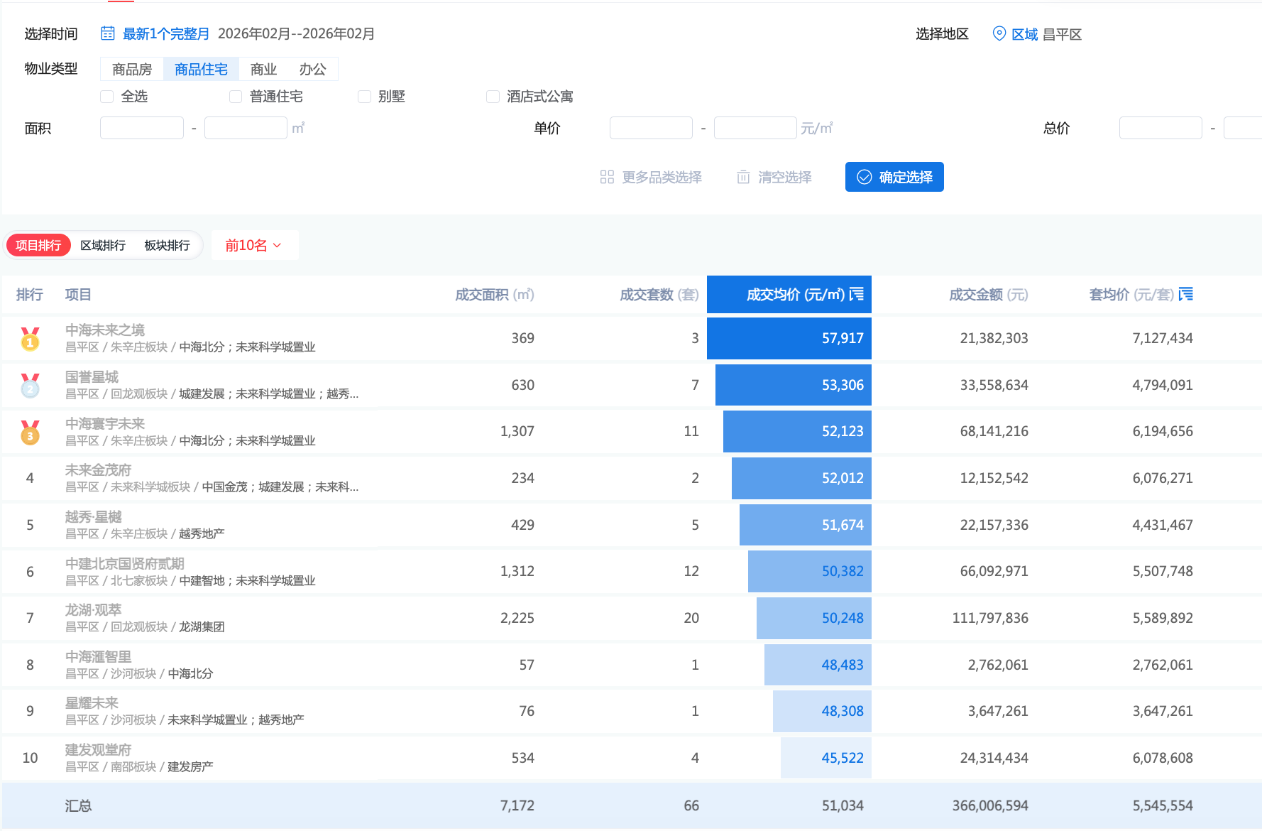 中海未来之境2月网签3套,金额2138万,杀入昌平成交榜前十