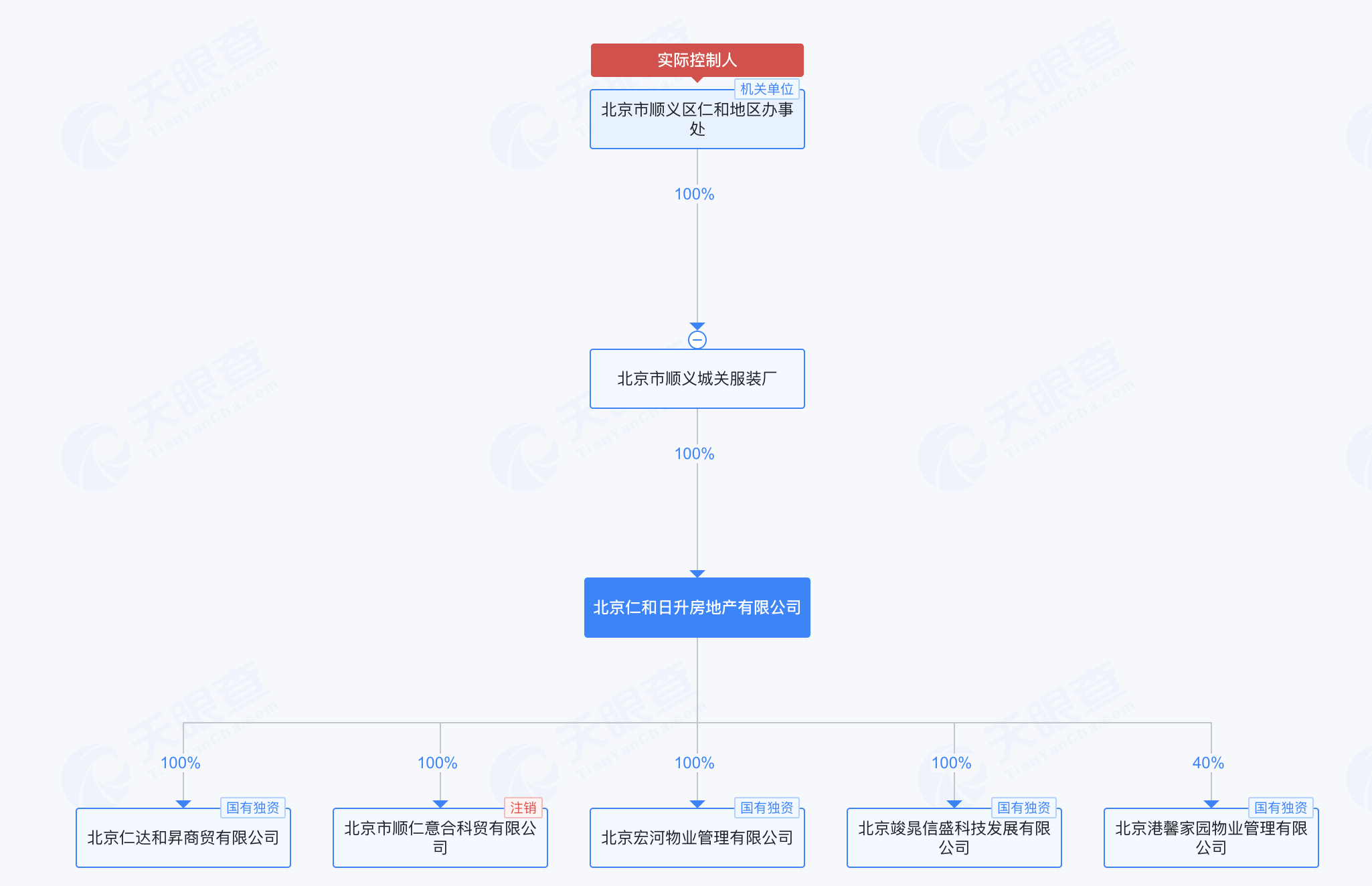 公司由北京顺义城关服装厂100%持股,是顺义区仁和镇(地区办事处)所属的基层国有企业。