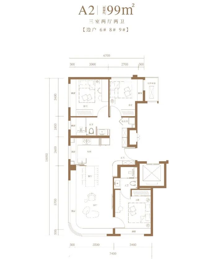 · 中间户:南向三面宽,格局经典,适合多代同住的传统家庭。