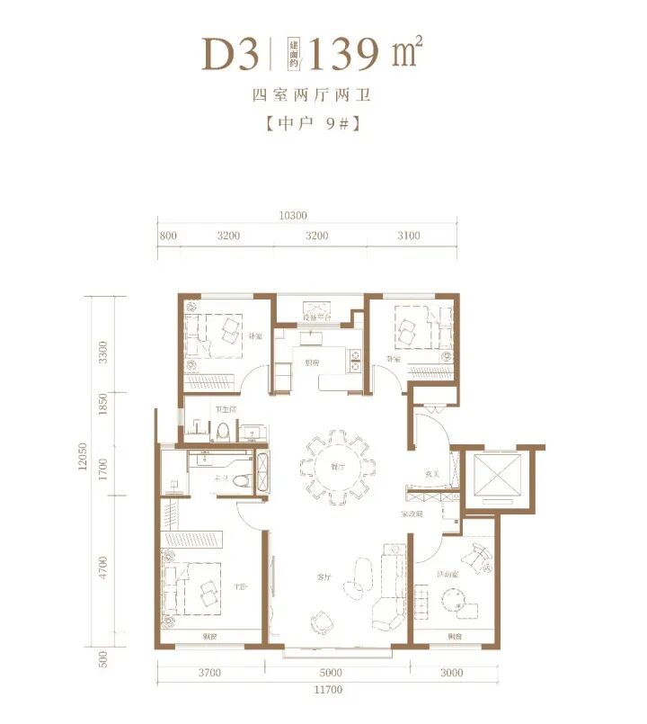 顶配181㎡是四面宽户型,放眼整个四环,无盘能对位。