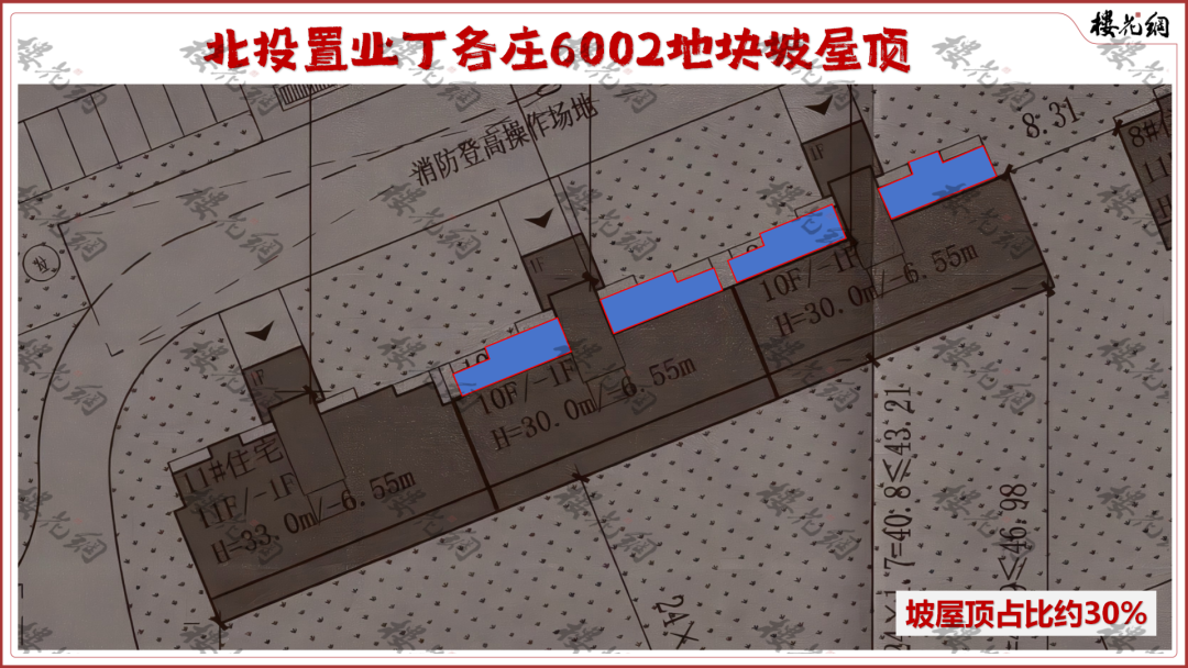 花姐推测,这条黑线的北面,是坡屋顶。大概有30%的屋顶,是有坡屋顶,像插花一样,点缀着屋顶。