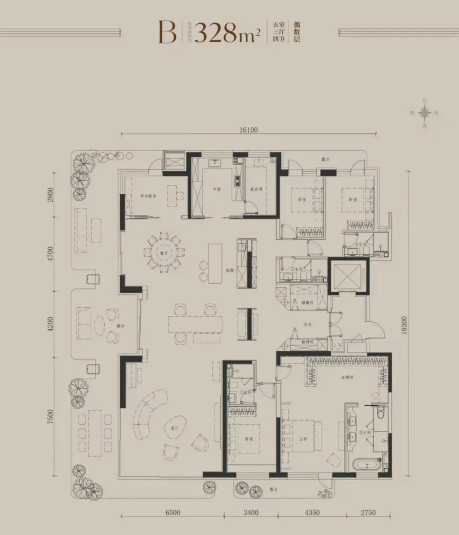 平层,159套,包括建面271/328㎡两种户型,均价6.6万-7.1万/㎡。