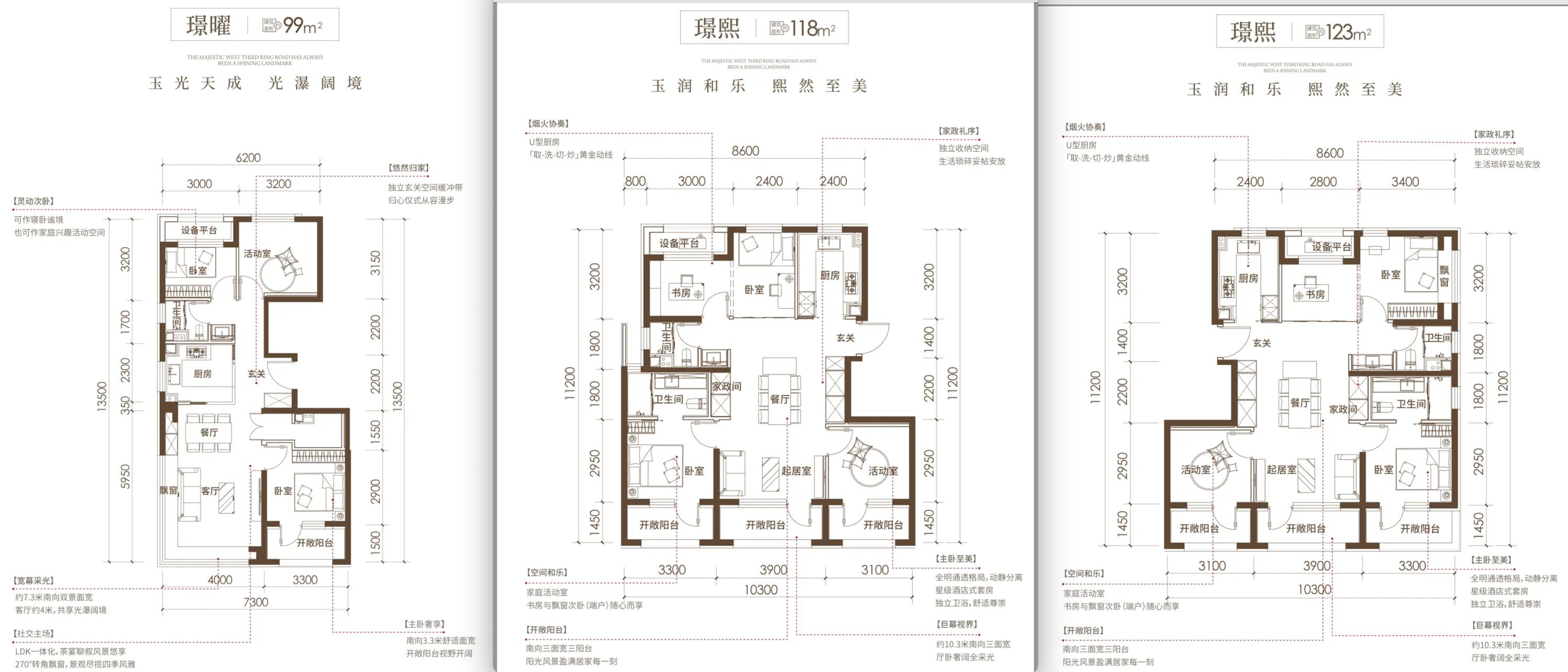 其余户型均为南向三面宽的阳台。