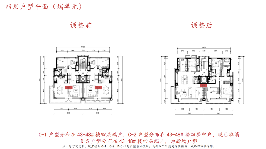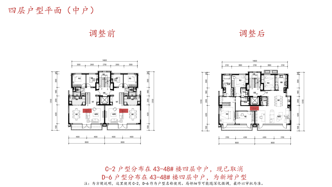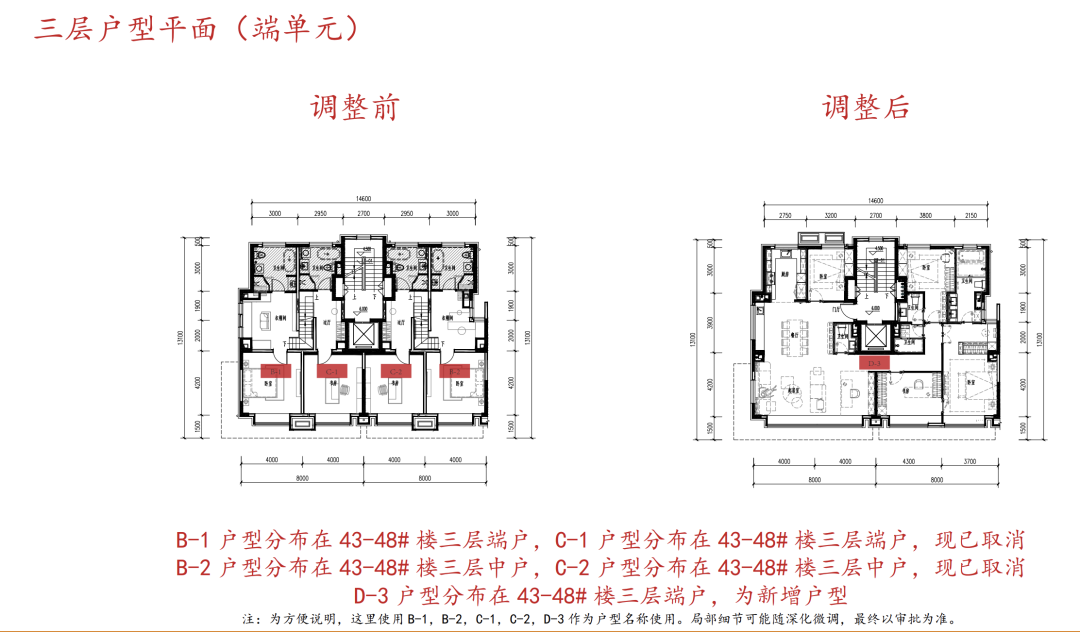 3、户型方面是最大的调整,原来的叠拼改成了平层产品。