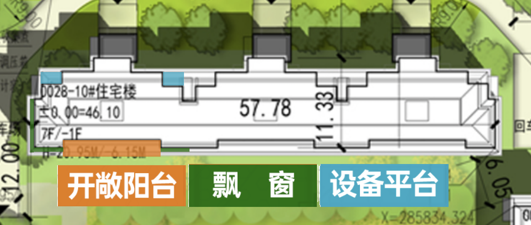 去年3月就已开盘预售的颐知筑西区(0035地块)没有阳台,赠送面积主要是南向通面宽的飘窗+北向不封闭的设备平台。
