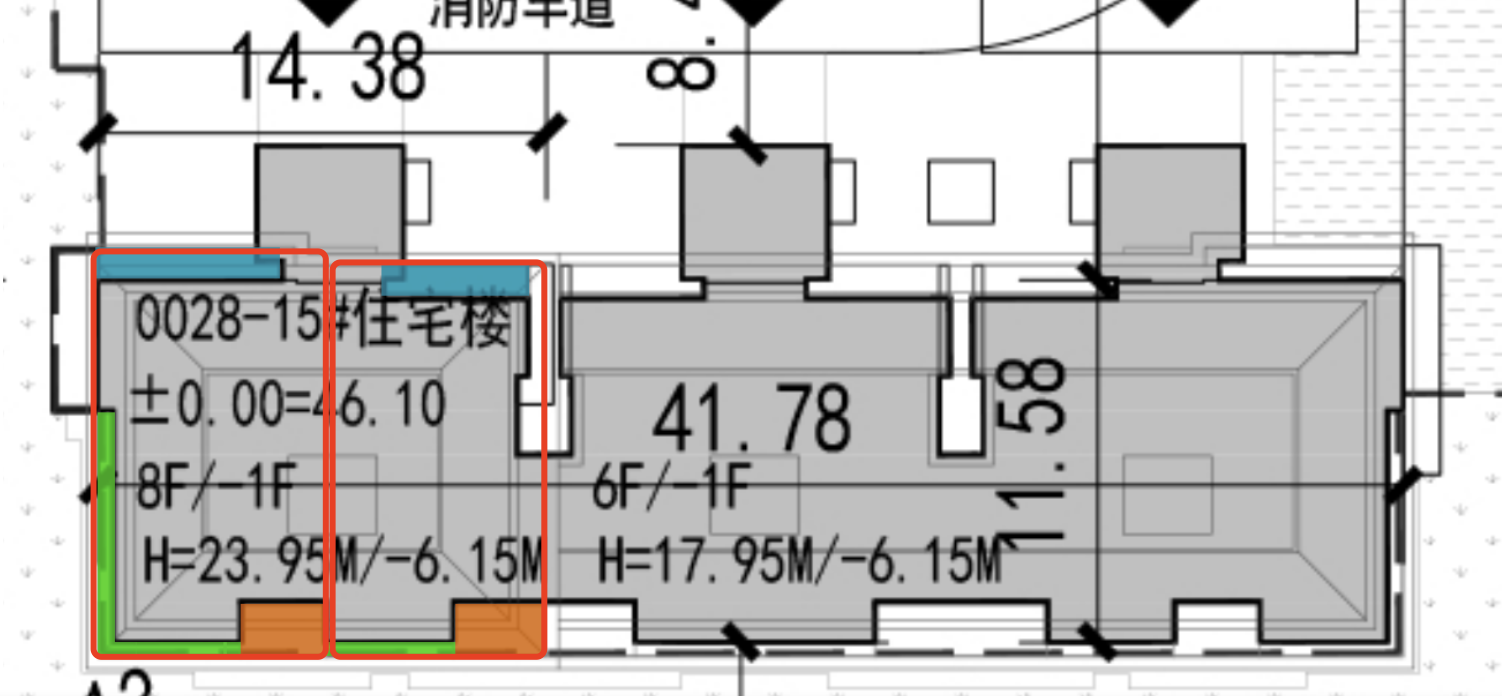 其南侧2号楼为6-8层,总高17.95-23.95米,这两栋楼南北间距31.56米。
