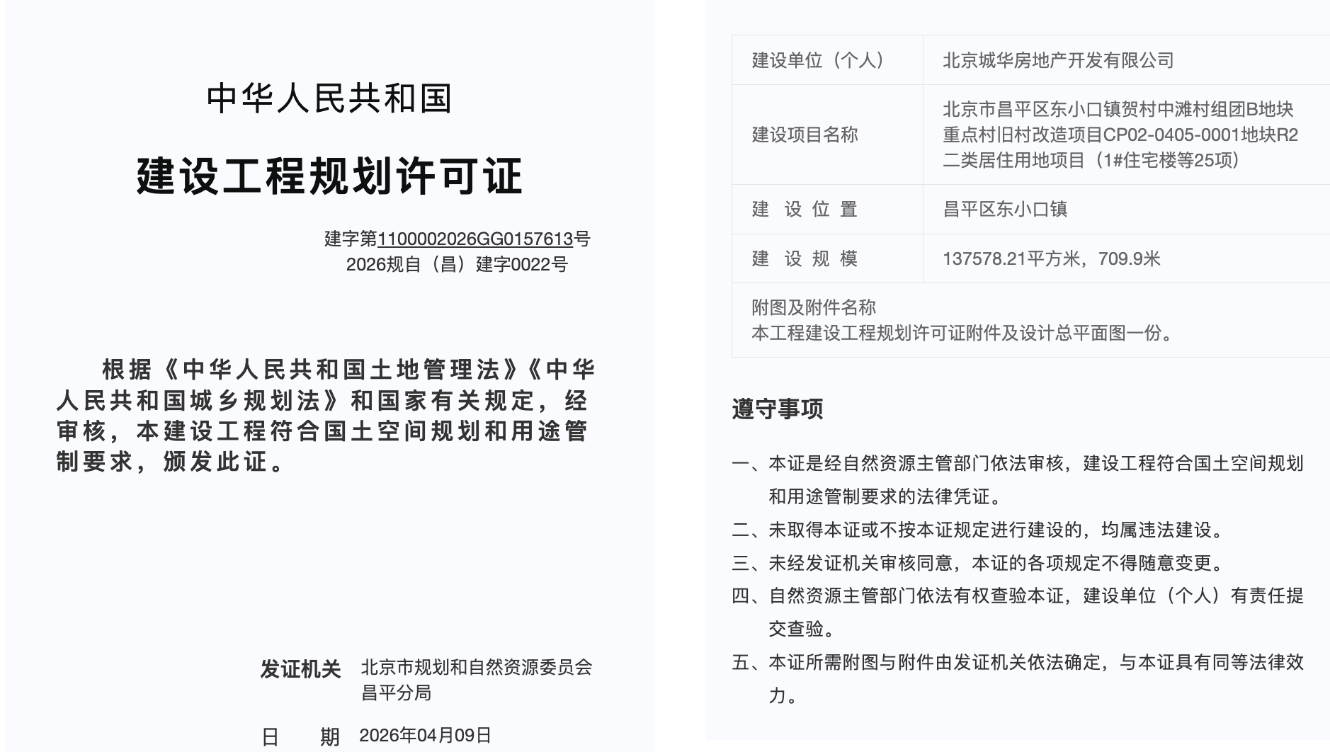 近日,昌平东小口新盘龙樾海序取得建设工程规划许可证。