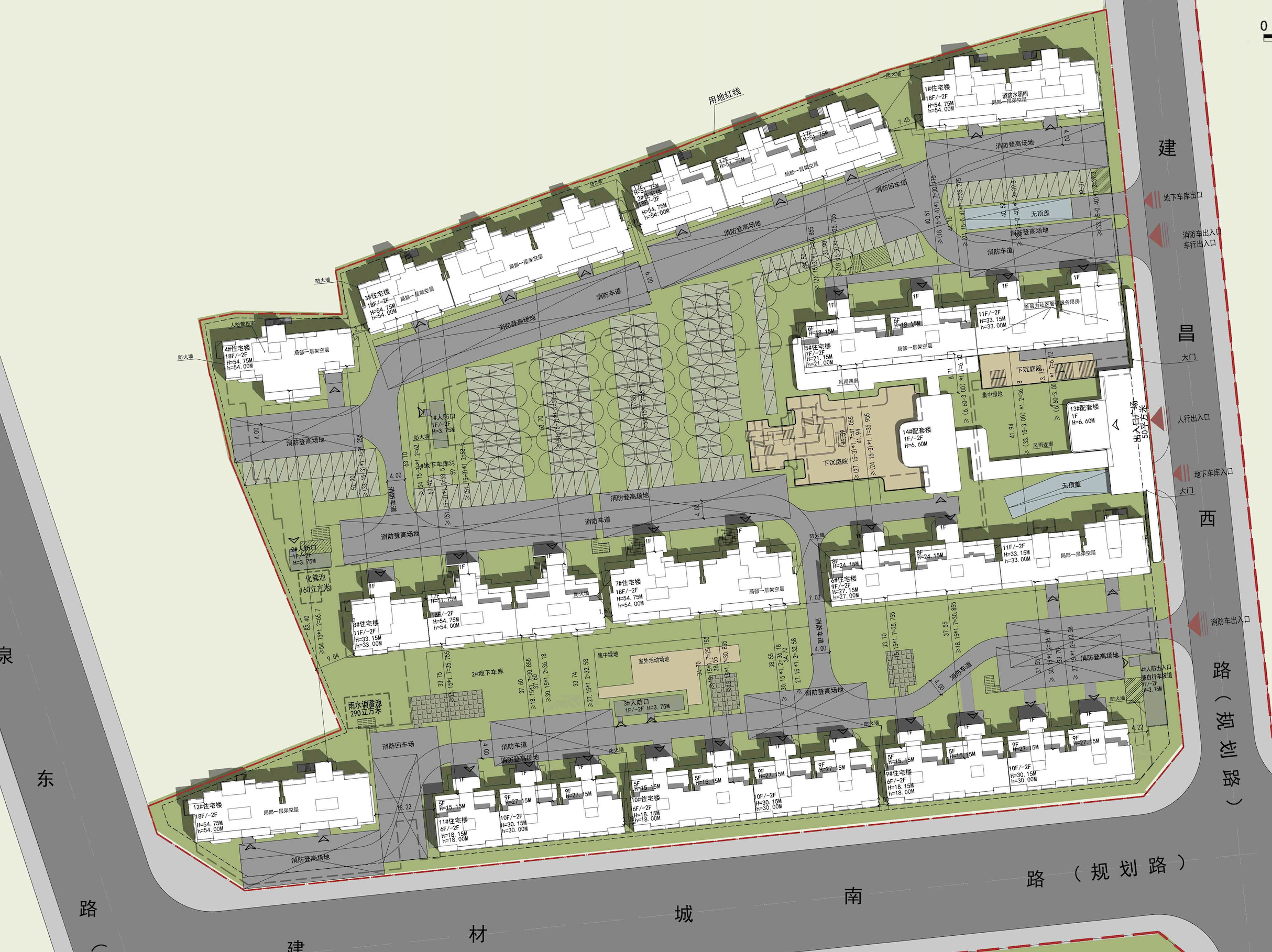 可再生回收点位于5# 住宅楼及2# 人防出入口的北侧;