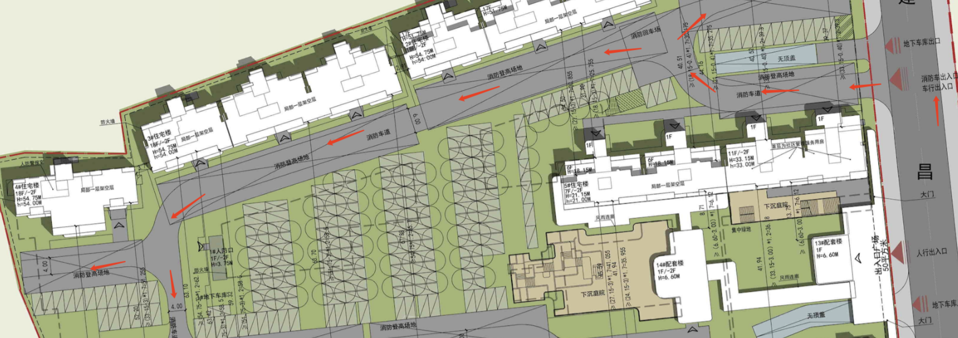 在回复反馈意见时,相关规定未对地面停车率提出限制;本项目地面停车场按林荫停车场设计;绿地率满足30%的要求。动线方面,小区地面车辆组织为单向行驶。