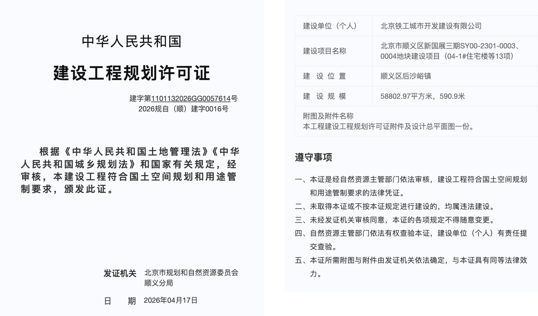 中铁工投进军北京地产市场的首个作品——顺义“青云国樾”取得规划许可证。